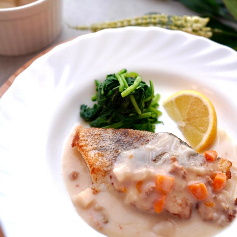 クラムチャウダーソースのたらのムニエル